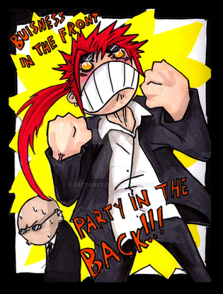 hmm if long emo hair trailing downward makes you sad, what does Wakka's hair say about him? also, he must use super glue instead of gel in the mornings