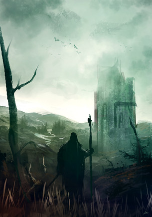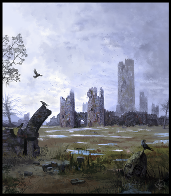 #burn #castle #concept #crow #dead #digital #drawings #land #paintings #skull #art
