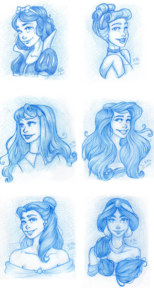 Disney Princess Watercolor SketchesBecause art was starting to become not fun. 5-10 minutes each.