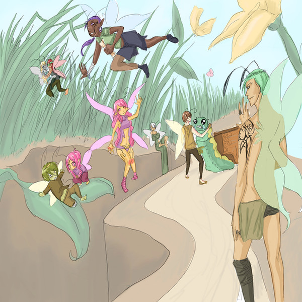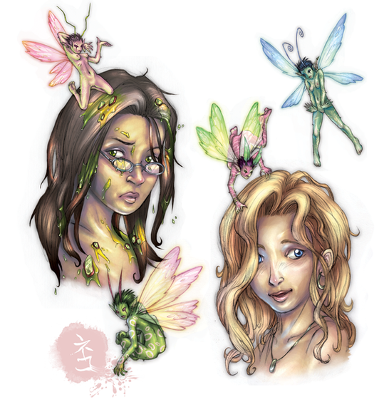 ...of DOOM! XD If the food categories of the food pyramid turned into faeries, this is how I imagine they'd look like.~At the top, we have the cute sugar, fat, oil faerie! I gave her cocoa gingerbread-ish skin.