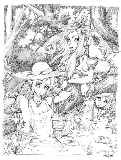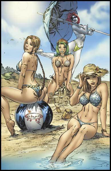 swimsuit cover for the SDCC '10 for zenescope masterfully colored by Knee-eye :[link]believe it or not i did not want to draw this cover when i was asked to do so..."swimsuit covers" are kinda lame and boring. they never have a hint of story telling that u can incorporate in there and there only SO many shots u have a girl in a bikini in u know?