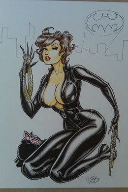 form because the figures are too similar in size...but it allows for more of a pin up look which often works....but in this case we had more of a story telling element so i didnt want to go down that pin up road. i think cat looks like she has weight to her leaning a lil to the side pulling her in.