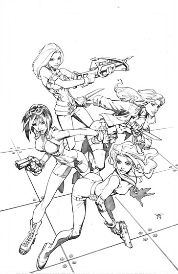 this was originally for jayCompany's sdcc exclusive but im not sure now that it will make it in time.i like the playfulness of this cover. i dont get to do this stuff very often. but drawing this many girls is never recommended cause u add more perspective and thats an easy way to fuck shit up......i like how the top part is all ASS and the lower is all jubblies