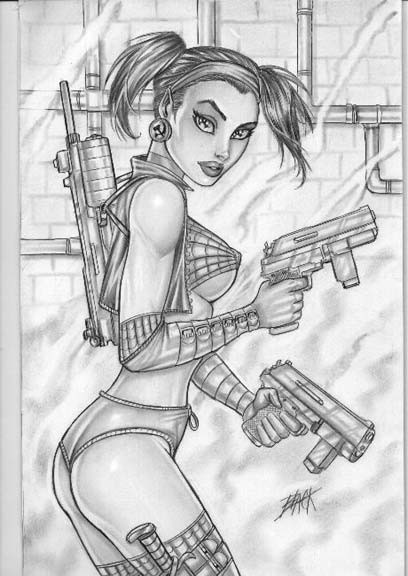as some of u loyal followers might know i like pushing the envelope as much as possible cause u can not draw this sort of thing in main stream comics so as long as i have the opportunity to shove naughty things in ones FACE, i will. but i have editors the put the cabosh on my efforts....such as the very suggestive of a "golden shower" squirt on the spread eagle girl on her jubblies.... CENSORED and removed...yup no splash on the jubblies here. had to take it out...bleh for higher power.