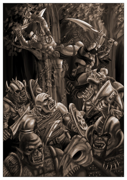 Dang this is intense. My favorite part is the girl. She looks so powerful and dynamic, nice work!
