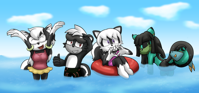 Loona and Summer are playing around in the pool on a nice summer day. Loona decided to get a little too playful as she suddenly started splashing large amounts of water at Summer.