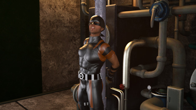 #bondage #chained #hooded #leather #maskedman #superhero #superheroinperil