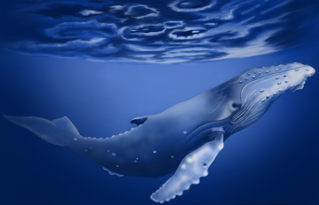 The magnificent humpback whale (Megaptera novaeangliae) is renowned for its impressive leaping displays and for the mysterious 'singing' of solitary males.A commision for *Beledra