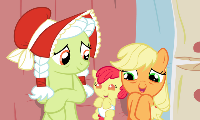 #mylittleponyfriendshipismagic #hasbro #dhx #grannysmith #kangaroo #pouch #applebloom #goingtoseed #goldiedelicious #pinkieapplepie
