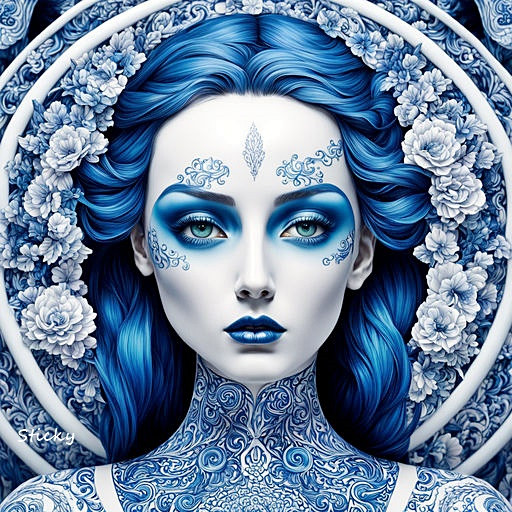 #portrait #beauty #fantasyart #digitalart #surreal #antique #artistic #blue #ceramic #cobalt #decorative #delicate #details #doll #elegant #fine #fragile #graceful #intricate #motifs #painted #patterns #porcelain #refined #timeless #traditional #white #woman #art