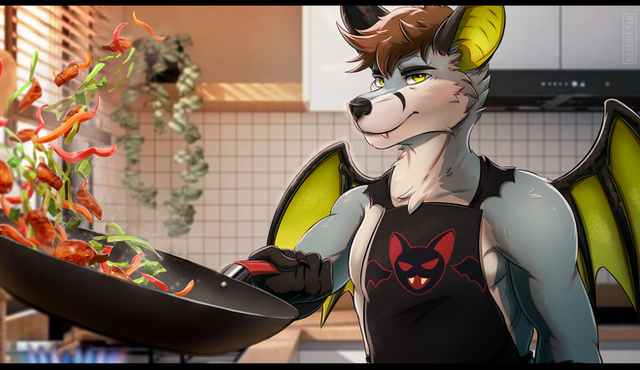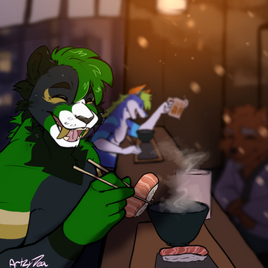 #anthro #avian #cooking #furry #gryph #kitchen #sushi