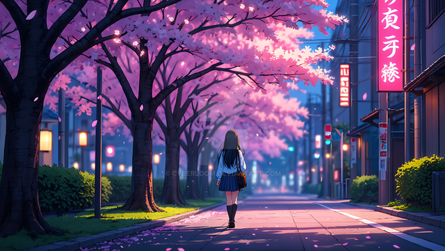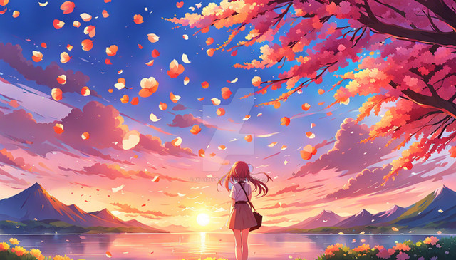 #anime #animedrawing #animegirl #colorful #digitalpainting #girl #illustration #sky #wallpaper #aiart #stablediffusion #cherryblossom