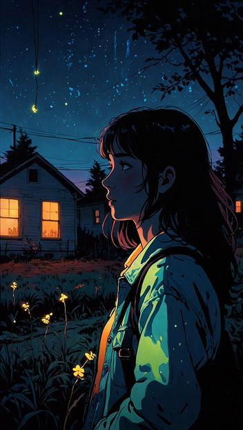 #anime #animedrawing #autumn #digitalpainting #girl #illustration #night #sky #aiart #stablediffusion #nightscenery #nightsky #stars