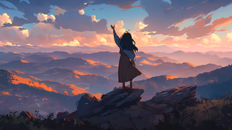 #anime #animedrawing #cute #cuteanimegirl #digitalpainting #illustration #aiart #stablediffusion #cliff #colorful #forest #landscape #sunrise #wallpaper
