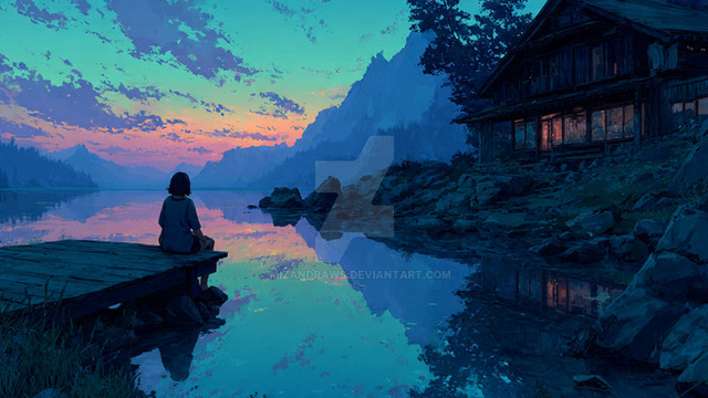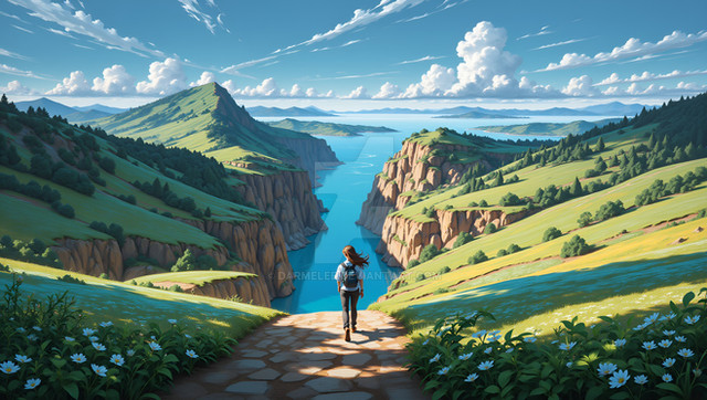 #anime #animedrawing #cliff #colorful #digitalpainting #forest #illustration #landscape #sunrise #wallpaper #aiart #stablediffusion #lake #nature #naturelandscape #redhairedgirl #scenery #scenerylandscape