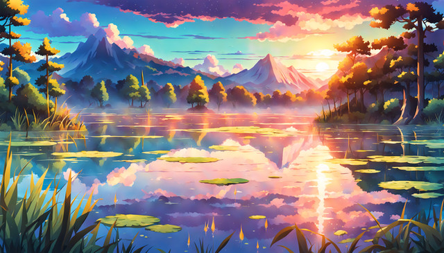 #anime #animedrawing #colorful #digitalpainting #forest #illustration #lake #landscape #nature #naturelandscape #scenery #sky #sunrise #wallpaper #scenerylandscape #aiart #stablediffusion