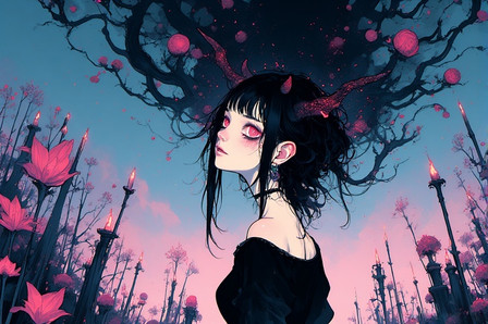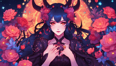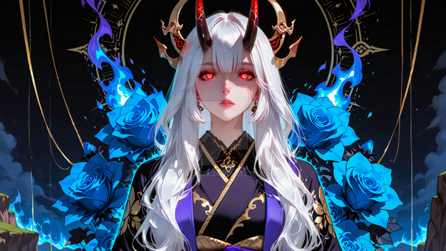 #anime #animedrawing #colorful #digitalpainting #girl #illustration #aiart #stablediffusion #braids #demongirl #redeyedgirl #whitehairgirl #hornsgirl