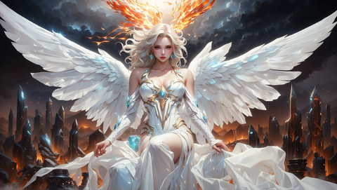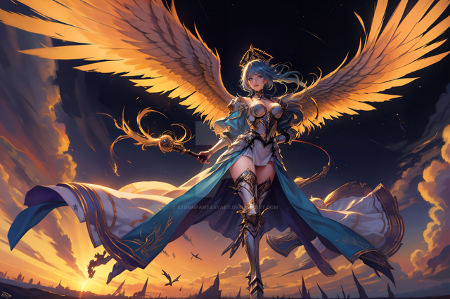 #angel #anime #animedrawing #blueeyedgirl #colorful #digitalpainting #girl #illustration #aiart #stablediffusion #angelwings #fantasy #fantasycharacter #wings #whitehairgirl