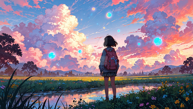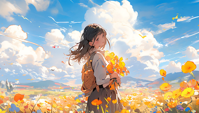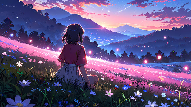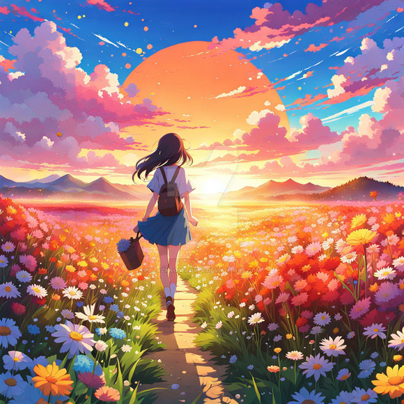 #anime #animedrawing #colorful #digitalpainting #flowers #girl #illustration #river #aiart #stablediffusion #landscape #landscapescenery #valley