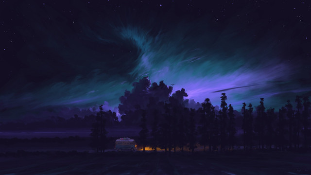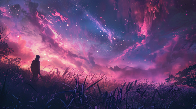 #anime #animedrawing #colorful #digitalpainting #girl #illustration #aiart #stablediffusion #fantasylandscape #flowers #landscapescenery #lights #nightscene #northernlights