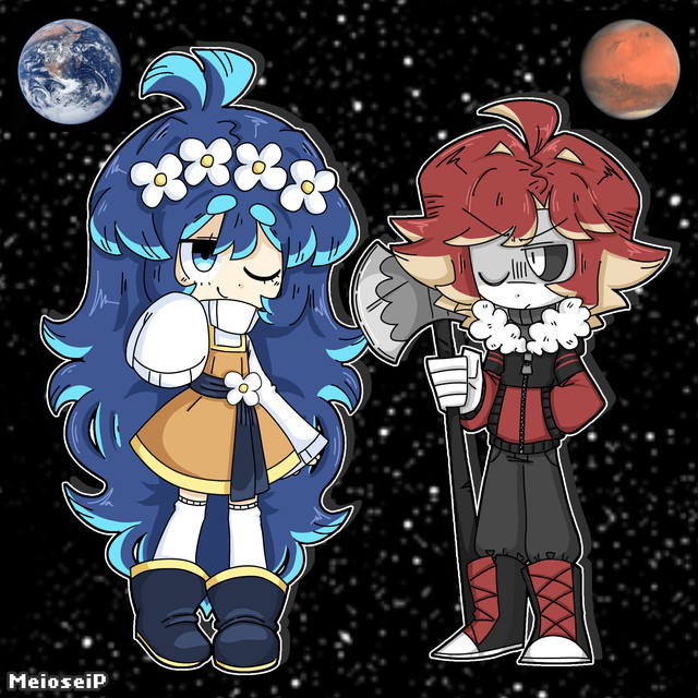 Them old designs are back!!! Except the hair because when I redesign my solar system characters in July 2023 in December 2023 I dislike the redesigns because I see it’s not my characters they are another characters so I prefer them old designs back except them hairstyles are not bad I’m not kidding I don’t like the redesigns of my solar system characters from July 2023 they looks terrible I said they’re not my characters and I got sad and want them old designs back!!! ⚪️🟠🌎🔴 and ofc Mars is older than Earth,Venus and MercuryVenus and Earth are twins but they’re different next I’ll draw Moon Phobos and Deimos