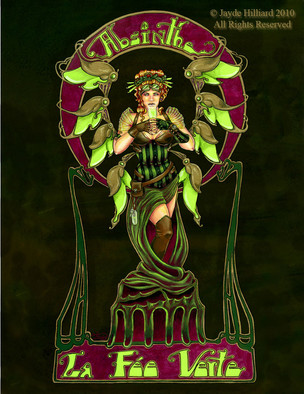 Saturated green, the figured spoon and woman's flattering hair remind me of absinth and "green fairies") I like the picture and how you described your vision of Cthulhu)