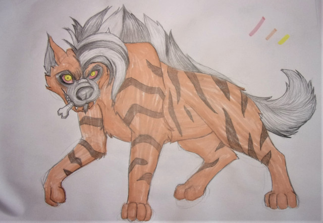 The false dogger is a kind of tasmanian devil which has evolved to mimic the shape and coloration of the dogger {although a person could easily tell the difference between the two, they are able to fool doggers much of the time.} While they eat the same prey, they cannot quite climb with the dexterity of a dogger and lack their sickle-shaped claws. This also renders them helpless against any larger predator who would eat them {even for a tazzy devil descendant, many predatory animals are far stronger and scarier than them.}To remedy this, a mated pair of false doggers will study the behavior of a dogger pack from afar, learning their habits, vocalizations, and body language. When they have sufficient knowledge they will sneak in during the night and attempt to establish themselves into the group without being noticed. Part of the way they do this is by having a similar scent to a false dogger, but the main adaptation is by both appearing to be male and showing submissive gestures when a dogger gets suspicious {so that the pack will be more likely to accept them in the morning.}