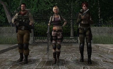a set of 3 gun poses. both claire's and hunk's poses are based on stances in mgs, claire's is solid snake in mgs 4 and hunk's is big boss in mgs ground zeroes.pose pack dowload