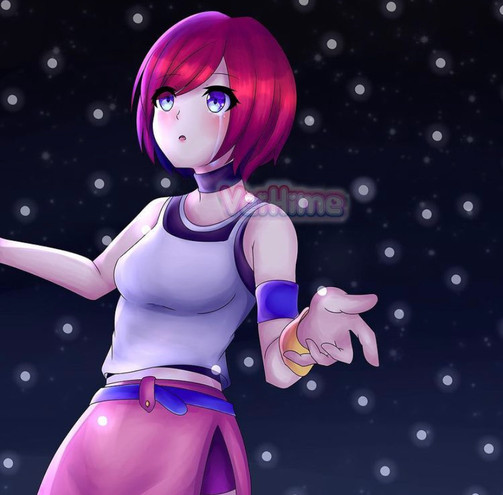 Great details on her hair! The background with the stars and the different colour looks really pretty. Also the pose looks really good, but I think the hand got a bit too small.