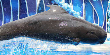 Ulises doing a siding bow to get ready for a vertical spin in the middle of the pool. I think this has to be my favorite photo of him from my last trip!Taken before One Ocean at SeaWorld San Diego on 12/19/12.