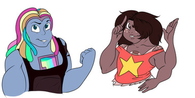 --This was just a sketch that I colored so it's not very neat at all, sorry--Their first fusion was...very...colorful and unfitting to the gem?