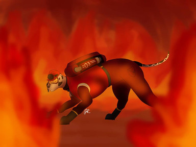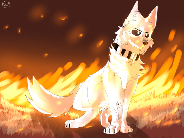 Another picture HavocHounds commissioned. Β This time of Tracker running through a forest fire.Tracker was supposed to be in a cool running pose, but I tend to have some troubles with that, so I tried, but the effect might not be there. Β I should probably figure out how to draw fire soon because this still looks subpar.