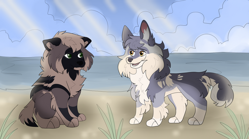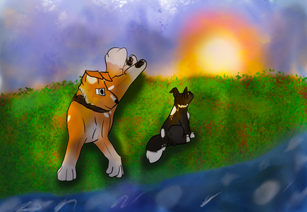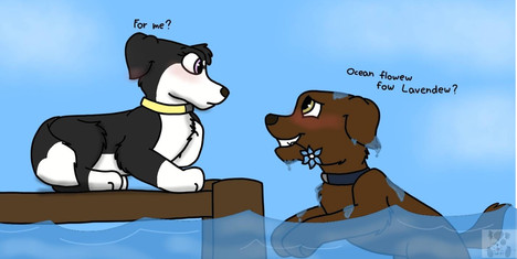 Just assume Teak and Zuma were on a romantic stroll and Zuma decided to jump in a shallow river, I don't know. I didn't think about what I was drawing before I drew it. Don't know what else to write for this, hope you like it~ Oh, also it's a pretty big picture, so, yeah.