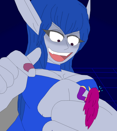 #bluehairedgirl #blueskinnedgirl #giantess #largebreasts #longhair #bustygirl #miniguy #giantelf
