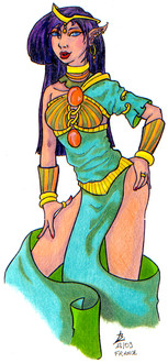 My lunar. As many read earlier along in my gallery, my former Exalted character, Ashes on the Southern Wind, really is ashes now as she met an untimely demise.So in order to continue playing I had to come up with a new character and thus Dawn here was made. She usually doesn't dress like this, But A comment was made about how for being a woman who uses what she has to get what she needs, she had no boobies showing or something such.