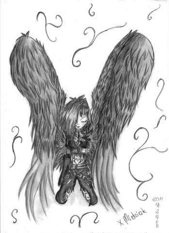 His wings, his expression, the way he's sitting, his hair, his horns, just WOW. I love it to ittybitty micropieces. Me wuv