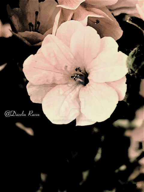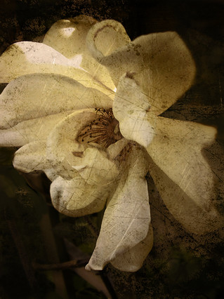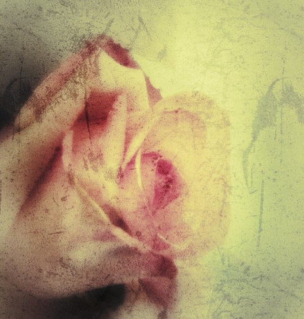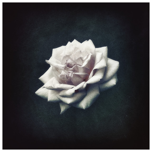 It does kinda look like a magnolia doesn't it? But no, it's not. It's a beautiful little antique rose that grows in my garden. I took this photo with my iPhone The original is a deep pink color, but it was too pretty and 'happy' looking for my concept here. The 'miscellaneous processes' I used made it look like a magnolia, but that wasn't my intention.