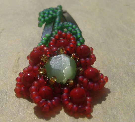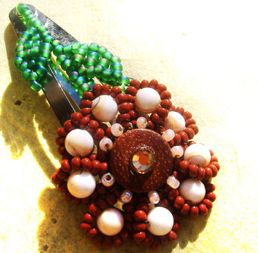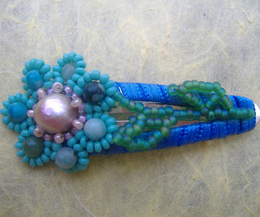 These earrings are made with freshwater pearls, Swarovski crystals, gutterman iced beads, cat's eye green teardrop, Czech seed beads, Japanese beads and delica beads.The color combination came when I saw the images from the Hubble telescope of the Orion nebulae.