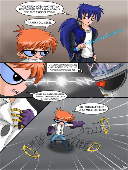 My entry for a contest held by for his mischevious girl, BioHazard (or Bio). Having Bio taking on my OC, Mekel, after she "Bio'd" my little Iris. Iris took one for the team for this entry.~~~> aww, Iris is a trooper, she'll be alright. You just best hope you win this thing.