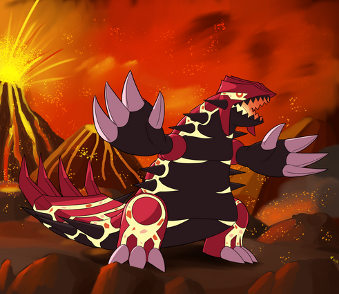 at first I gathered pics from here on DA,as references,but I later noticed groudon had shoulder pad in the game trailer.