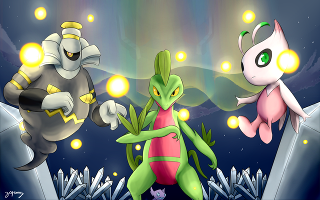 Mesprit,Azelf and Uxie also arrive at the Gathering,awaiting the arrival of the host.Big meeting about to take place.