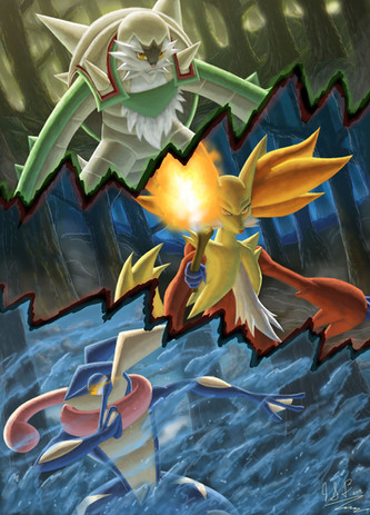Serperior's wondering how did you get soo deep into its habitat.Samurott doesn't care how you got into it's domain, but it knows Exactly what to do with you...