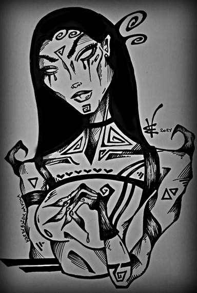 This piece is an original inspired by a base I came upon on Pinterest.It is made by an Optimus Fine Point Pen, black ink, and a Canson sketch book. ✒️📘