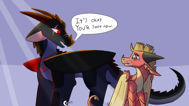 #athena #bountyhunter #ce #contestentry #dragon #hybrid #scene #wof #wingsoffire #mudwing #sandwing #sandwingwingsoffire