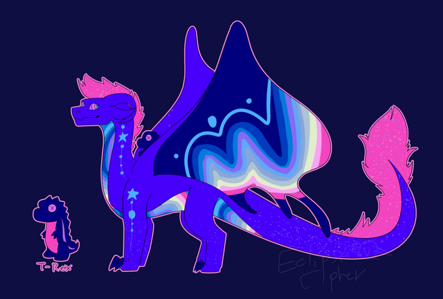 Their scales rand from pink to purple-blue always accented with blue scales that glow then they channel lightning. Their eyes usually include blue, silver, and black, that look pure white when obstructed by electricity.