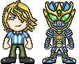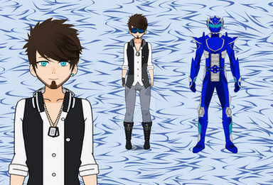 THis is Aokii Shoichi, Kamen Rider Mage, he came from a dimension that looked like Medieval age. He and his partner, Kamen Rider Warrior, faced KR Decade that was destroying them world. So during the fever of the battle, KR Warrior sacrifice himself in order to save Shoichi and opens a dimensional gate to player and yuuhi's world. Mage jumps in it and comes to that reality, being the rider nº 6 (nº4 at good side) of that relm.Mage also takes part of Rider Gun