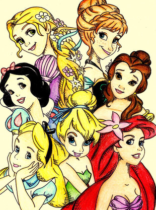 I did a small doodle of a few Disney princesses, but I ended up drawing all of them. Mind you, drawing just a few doesn't take much time and effort, but having 13 characters.....