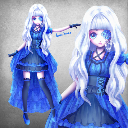 Redesign of my OC from 2011. Lazy af background; it's supposed to be just character reference anyway.She used to have a white lace blindfold: the secret of her eyes are revealed! She's partially blind.