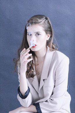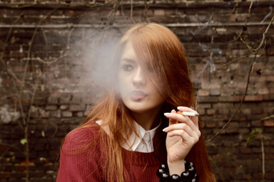 #blackskirt #cigarette #daylight #fashion #fashionportrait #girl #leafs #lithuania #model #outdoor #people #portrait #redhead #shirt #smoking #white #woman