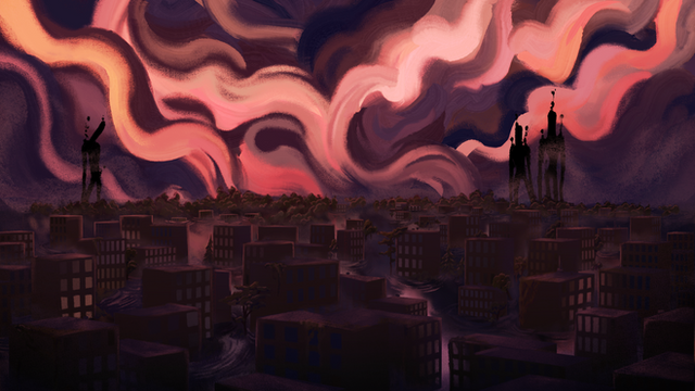Very surreal! Straight away I thought of mammatus clouds which "dangle" below the anvil of severe storms. I often imagine that they'd be "dripping" downwards not too unlike this. The lighting captures that last bit of sunlight for the day perfectly and the human figure shadow gives a very eerie mood to it